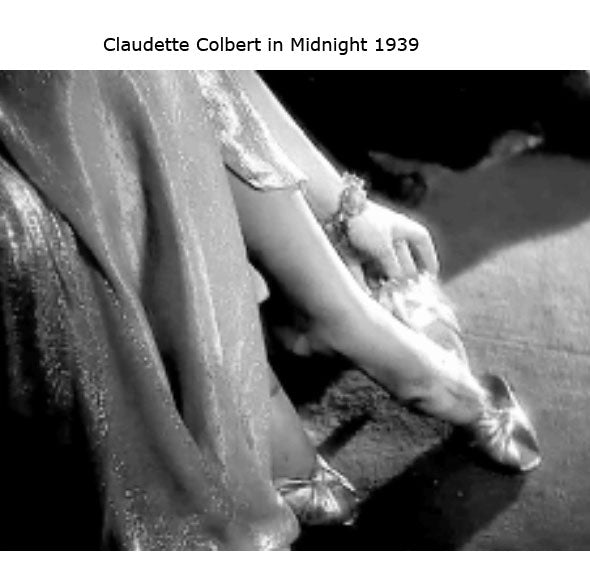 Coincidentally the week after I bought these sandals I saw Claudette Colbert wearing an almost identical pair in Midnight (1939).