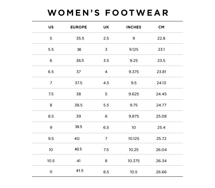 Refer to our size chart for a rule of thumb conversion.