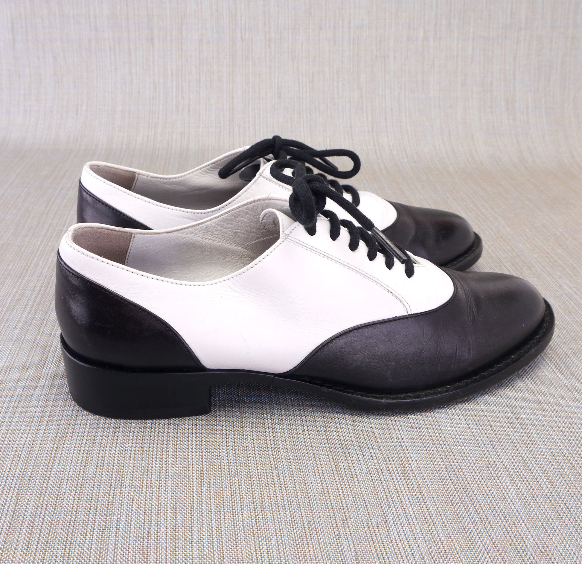 Flat Oxfords in spectators style, made in the 2000s by Ferragamo for Yohji Yamamoto. Timeless style, I had some in the 80s very similar and still the height of fashion today. Great quality from Salvatore Ferragamo. Leather upper, lining and soles. Welted soles.