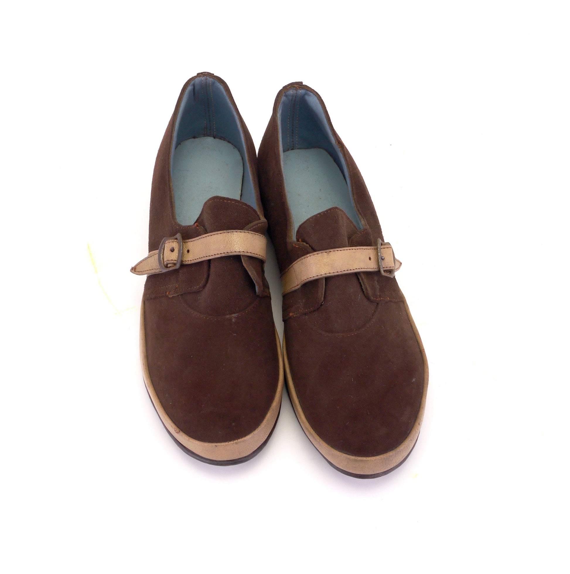 Deadstock 1940s Brown Suede & Beige Casual Wedges