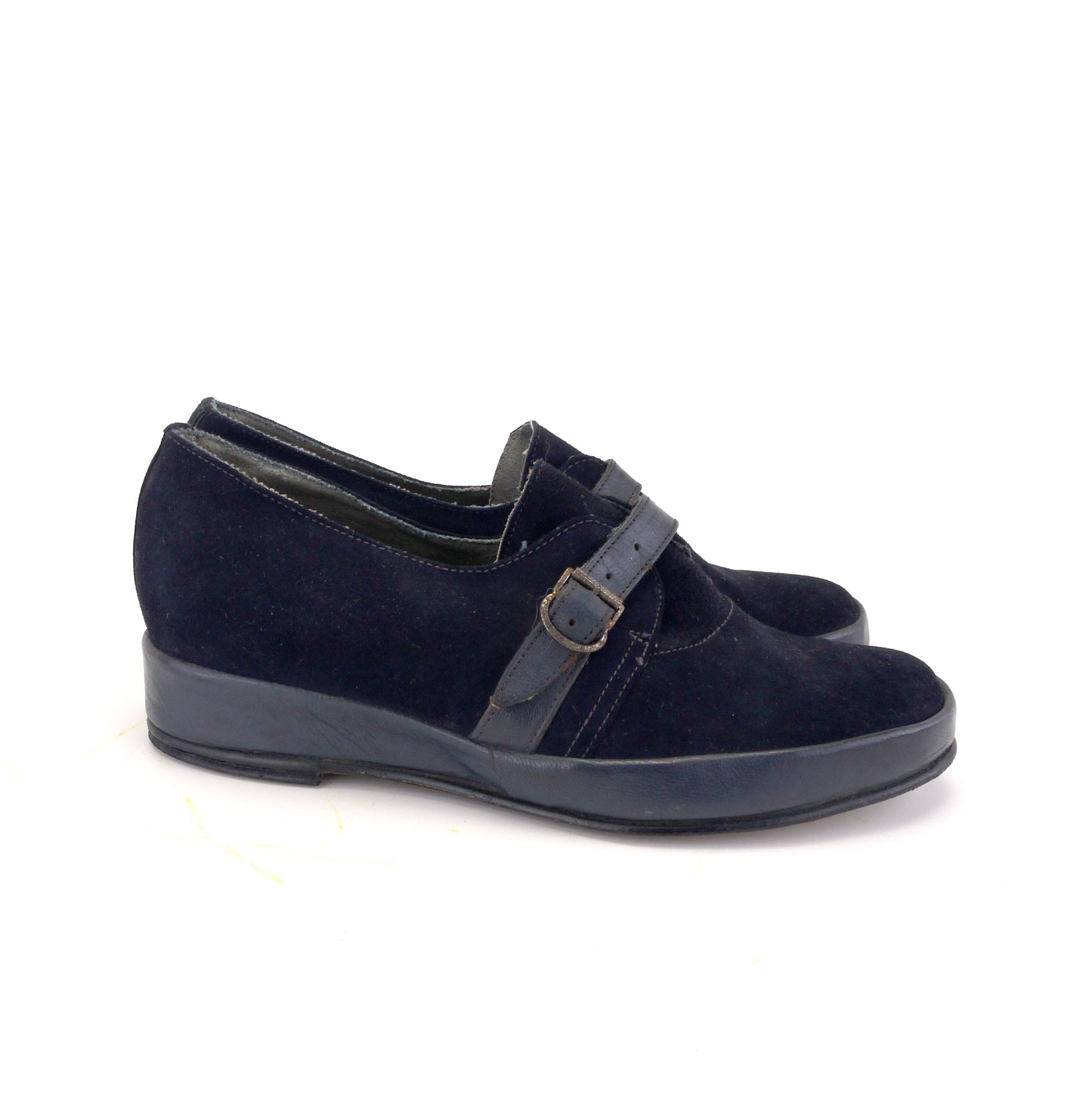 Deadstock 1940s Navy Blue Wedges UK 3.5